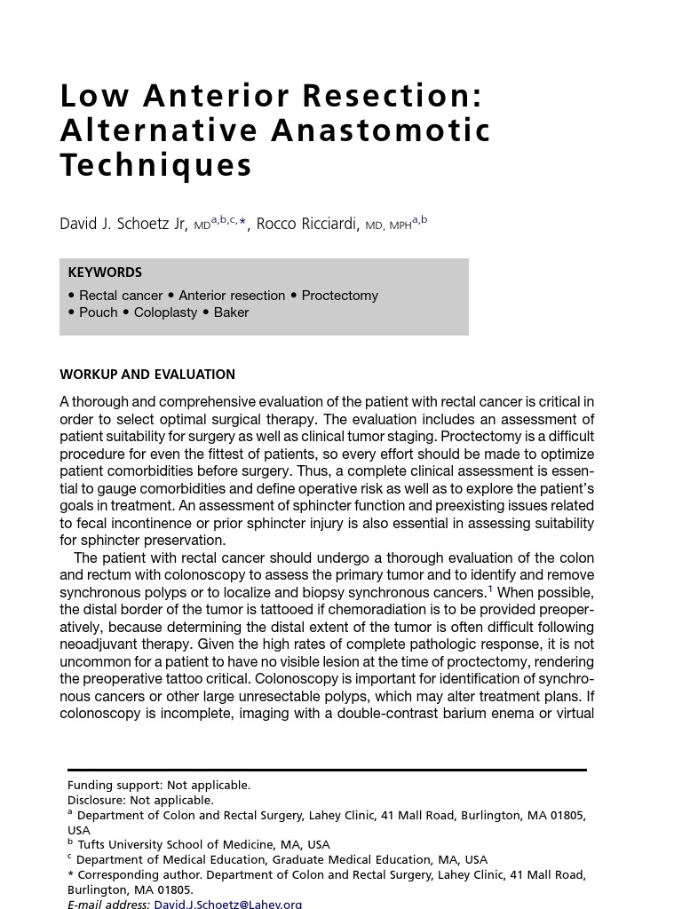 LAR Alternative Anastomotic Techniques PDF Colorectal Cancer
